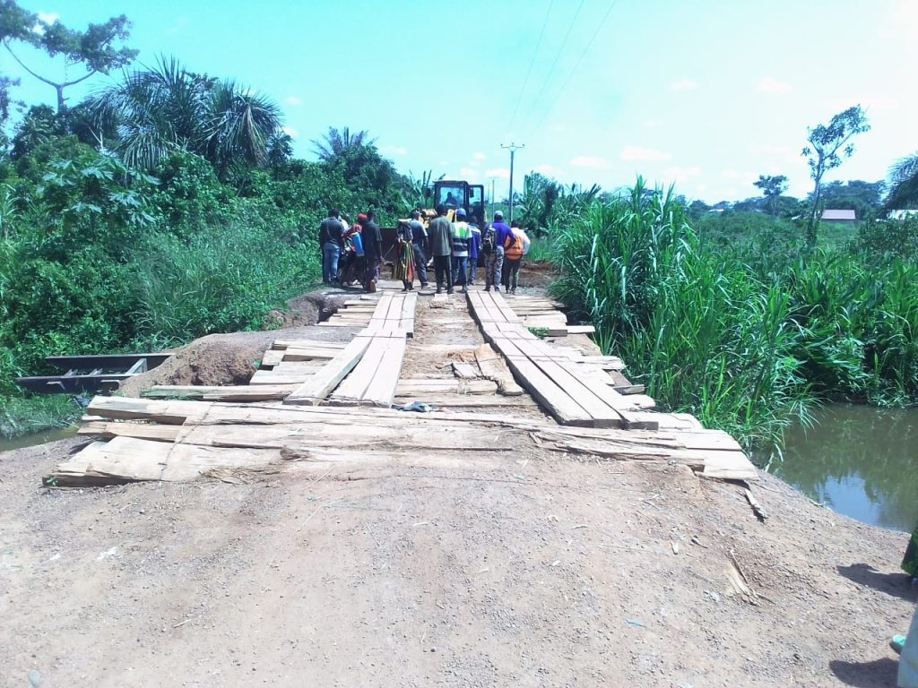 Voici jusqu’à lors, ce qui tient lieu d’ouvrage de franchissement pour rallier le village Koumé au poste de Commandement du 12è BRIM. Un pont forestier qui permet aux populations de ce nouveau secteur ( Quartier Général) de se mouvoir et d’évacuer les vivres de cette zone qui est un bassin de production.